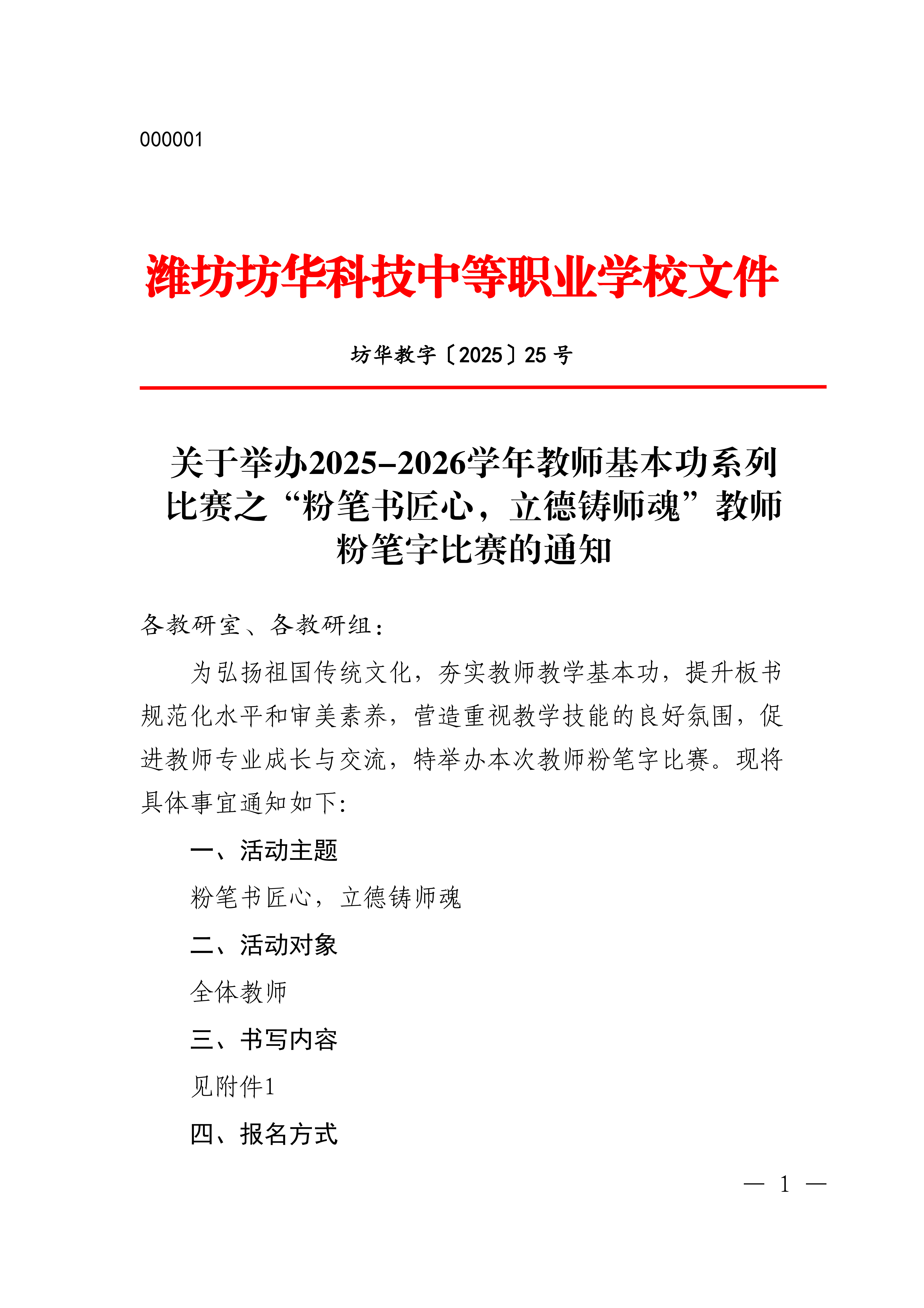 关于举办2025-2026学年教师基本功系列比赛之“粉笔书匠心,立德铸师魂”教师粉笔字比赛的通知