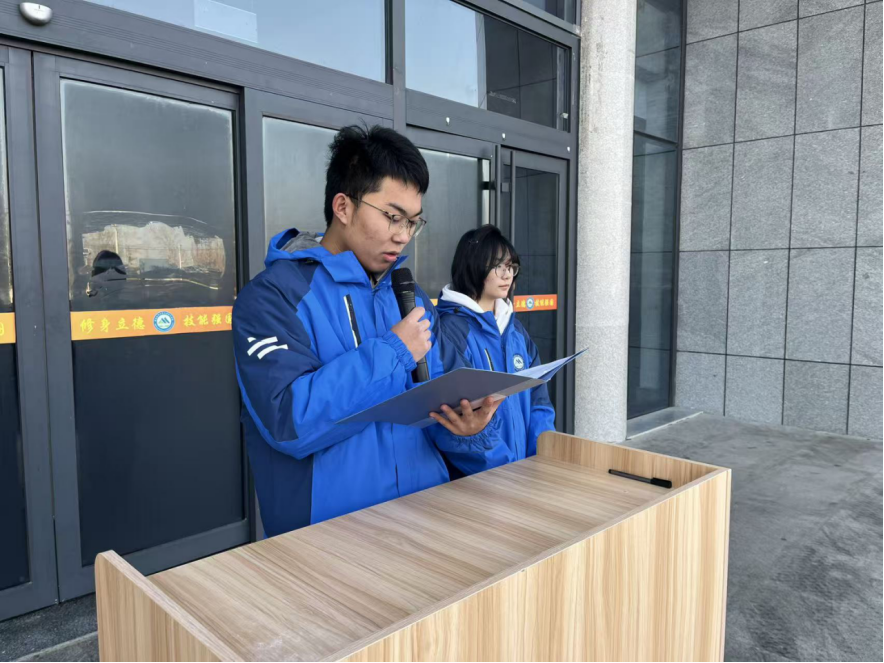 今天的升国旗仪式由我校2025级畜牧学院3班张梓杨同学主持,2025级畜牧学院3班赵梓含同学发表《寒梅傲雪 志在前行》的国旗下讲话。