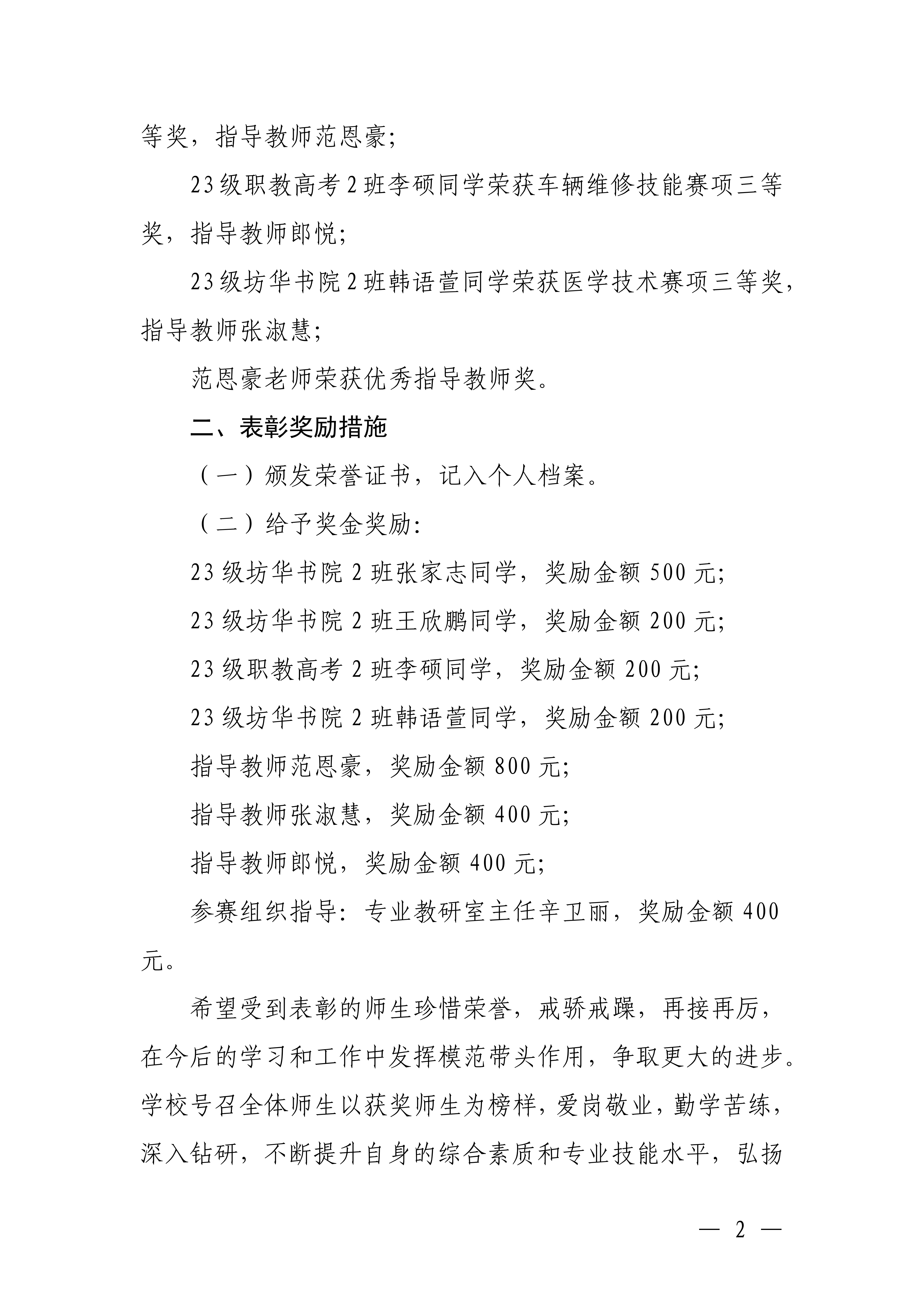 关于对 2025 年潍坊市职业院校技能大赛 获奖师生表彰奖励的通报